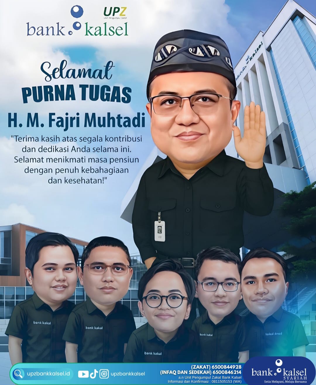 Dengan rasa syukur Alhamdulillah dan bahagia, saya/ ulun hari ini berada dalam pusaran waktu untuk menandai awal dari memasuki masa persiapan pensiun. Saya/Ulun ingin mengucapkan terima kasih kepada seluruh manajemen Bank Kalsel dan rekan-rekan yang telah mendukung saya/ulun selama ini di UPZ dan Staf Khusus Bank Kalsel.