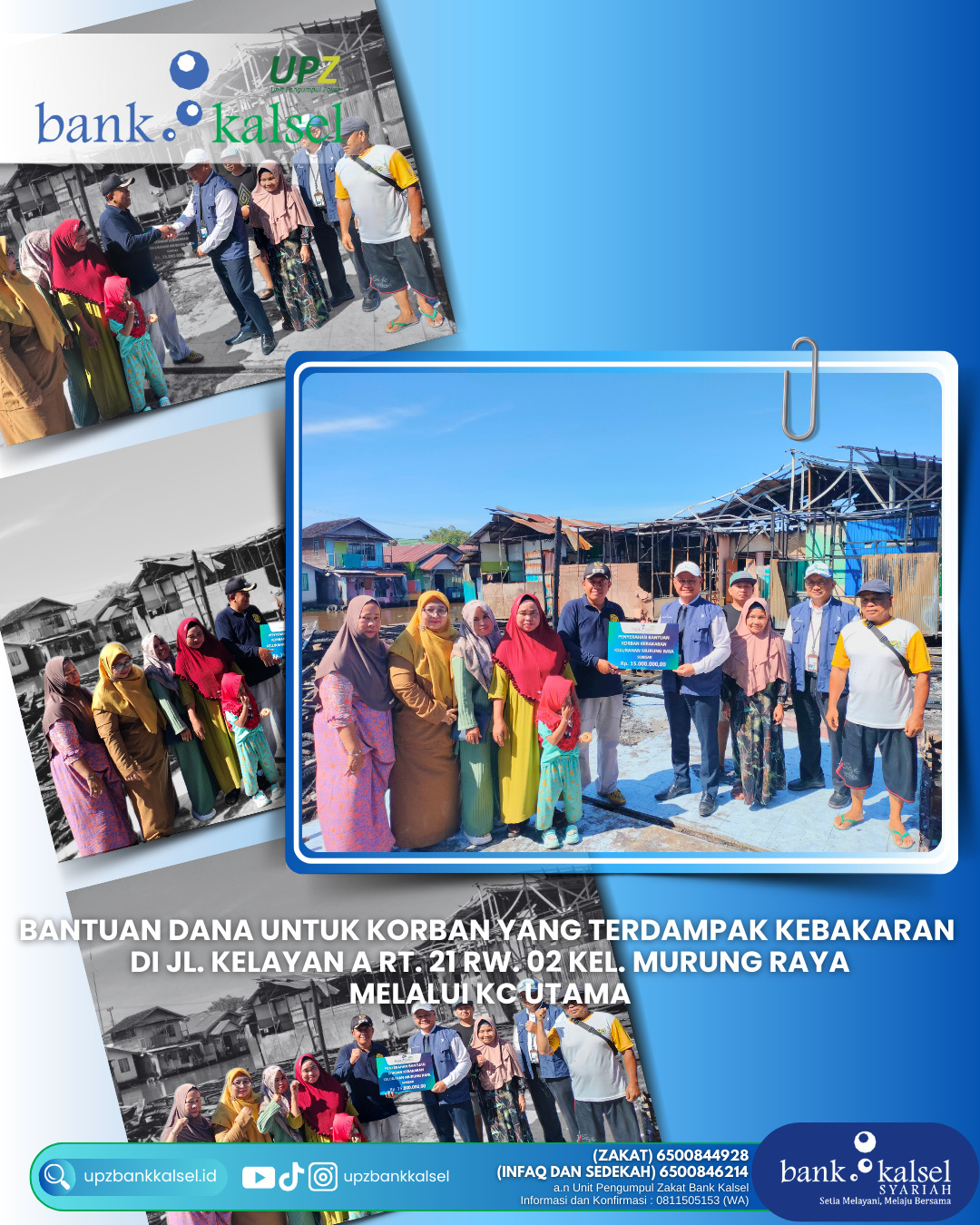 BalainNews.com, BANJARMASIN – Bank Kalsel melalui Kantor Cabang Utama menyerahkan bantuan dana kepada 10 kepala keluarga (KK) yang terdampak musibah kebakaran di Jl. Kelayan A RT.21 RW.02 Kel. Murung Raya, Kec. Banjarmasin Selatan, Kota Banjarmasin Rabu, 7 September 2025. Kebakaran tersebut menghanguskan 5 buah rumah dan 1 bedakan 5 pintu menyebabkan puluhan warga kehilangan tempat tinggal.