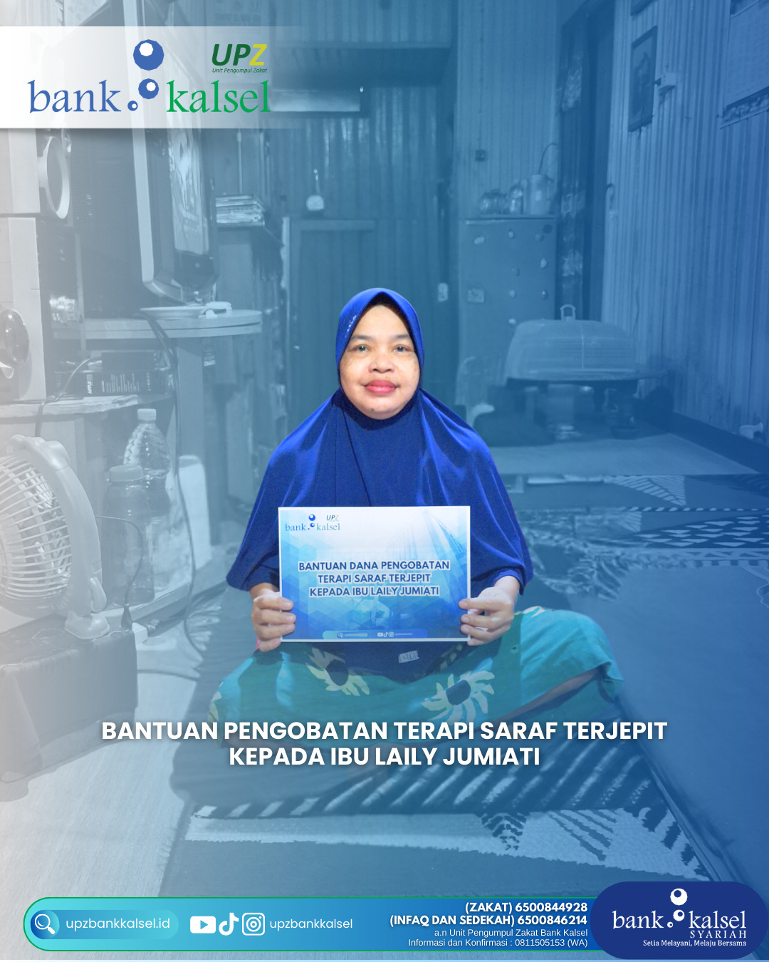 BalainNews.com, BANJARMASIN – UPZ Bank Kalsel telah menyerahkan bantuan dana kepada Ibu Laily Jumiati, yang saat ini menghadapi kondisi saraf terjepit (herniated disk) dibagian pinggang. Bantuan...