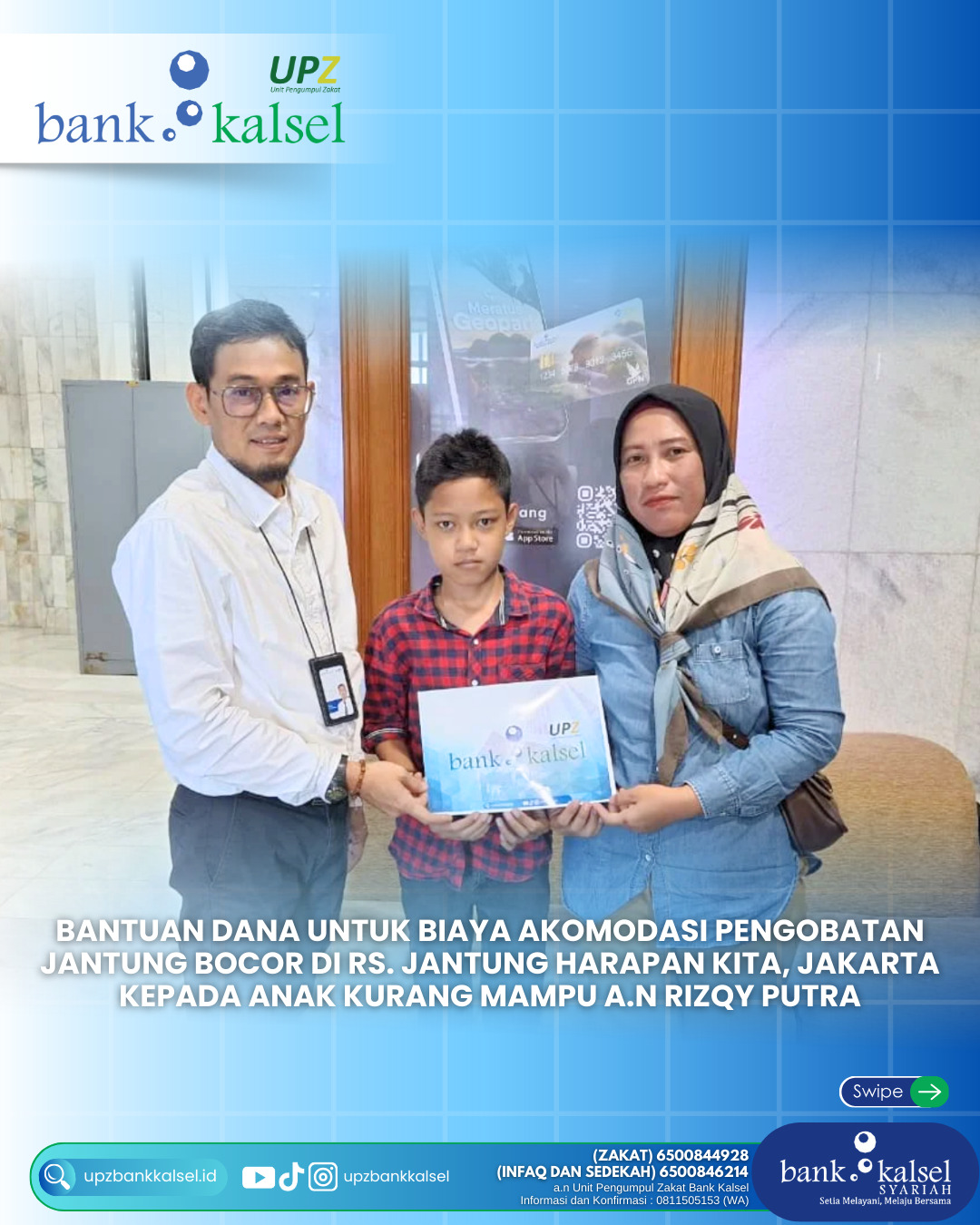 BalainNews.com, BANJARMASIN – Bank Kalsel melalui Unit Pengumpul Zakat Bank Kalsel menyalurkan bantuan kesehatan untuk Rizqy Putra yang menderita jantung bocor. Rizqy Putra sudah menderita penyakit...