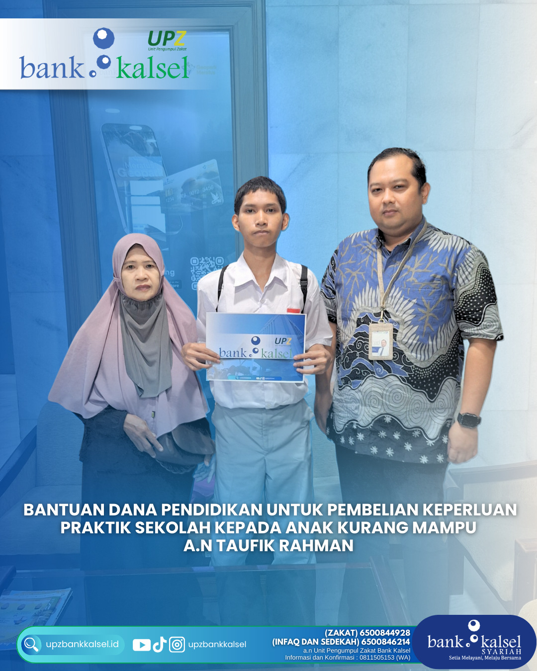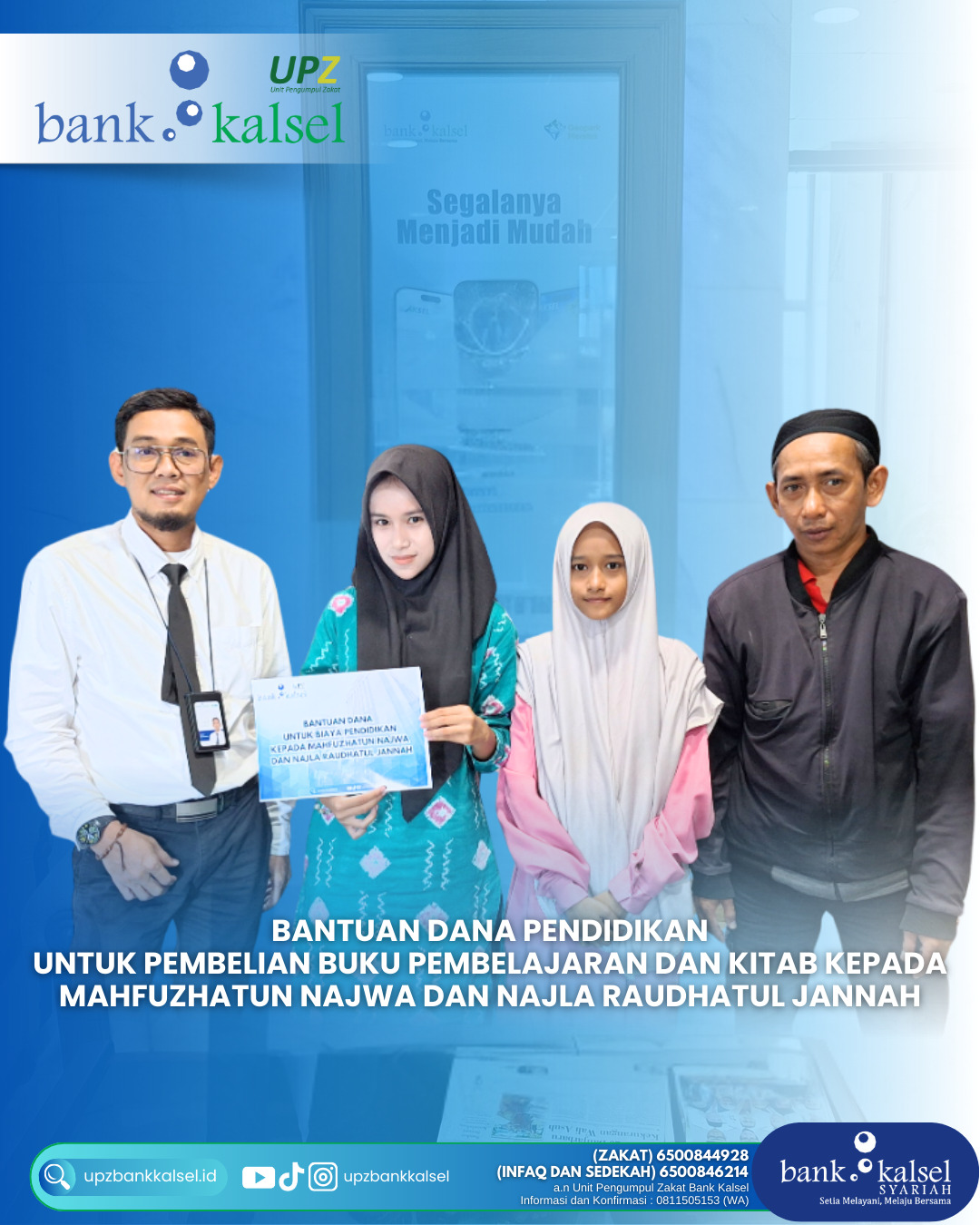 BalainNews.com, BANJARMASIN – Dalam upaya mendukung peningkatan pendidikan generasi muda, Bank Kalsel melalui UPZ Bank Kalsel menyalurkan bantuan pendidikan kepada dua anak kurang mampu, yakni Mahfuzhatun...